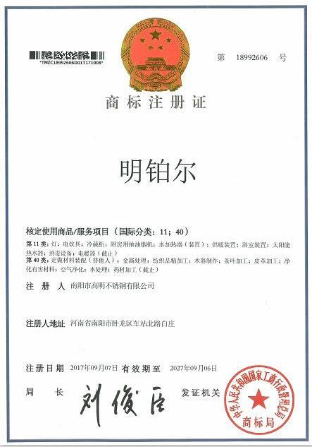 明鉑爾®國家商標知識產(chǎn)權(quán)榮譽證